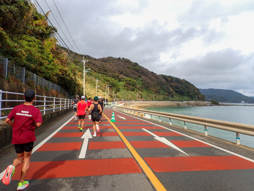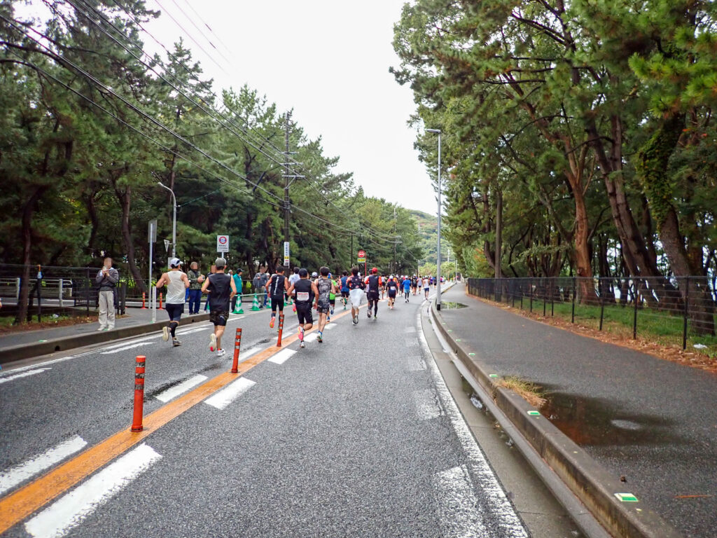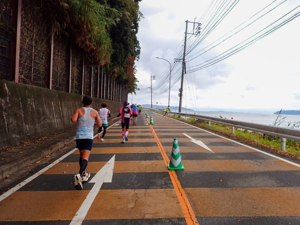 天神をスタートして糸島市へ向かうコースで、序盤は都心の中心部を、後半は二見ヶ浦をはじめとする海沿いの景色の中を走ります。