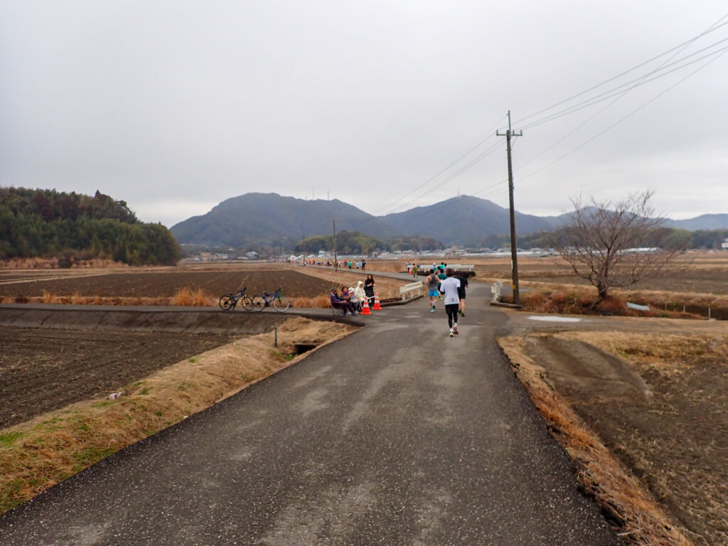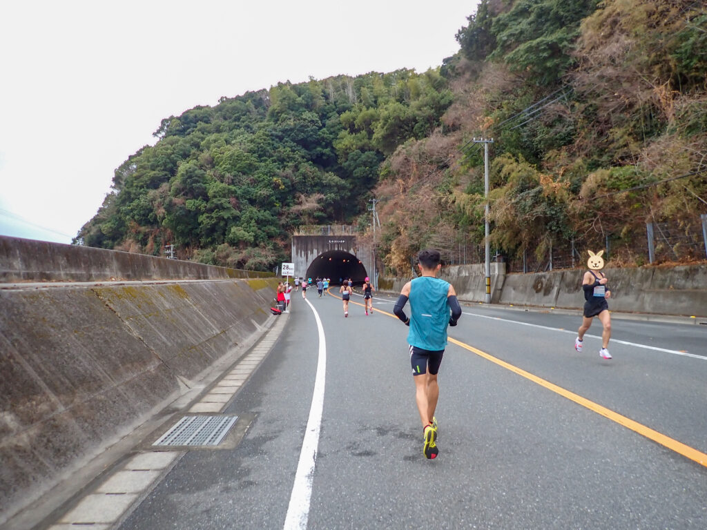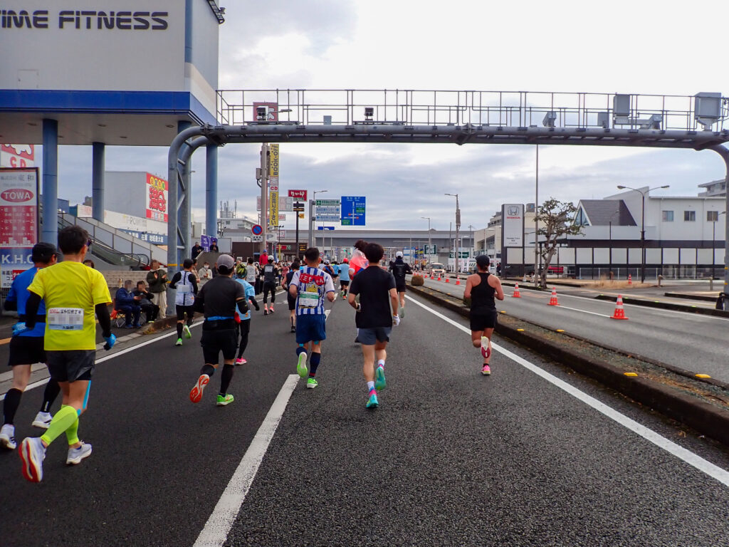 海沿いの道を離れ、春野陸上競技場へ向かいます(40km通過)