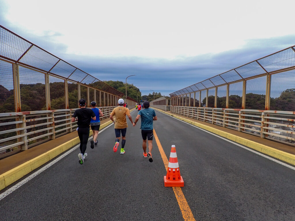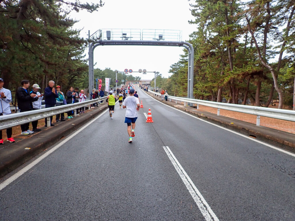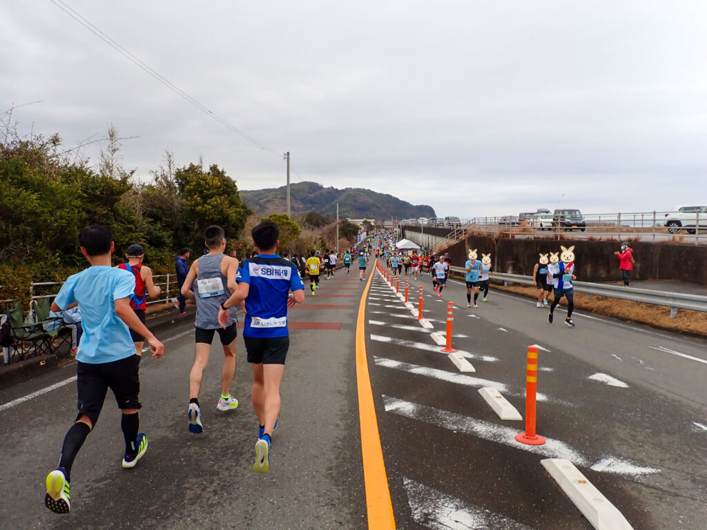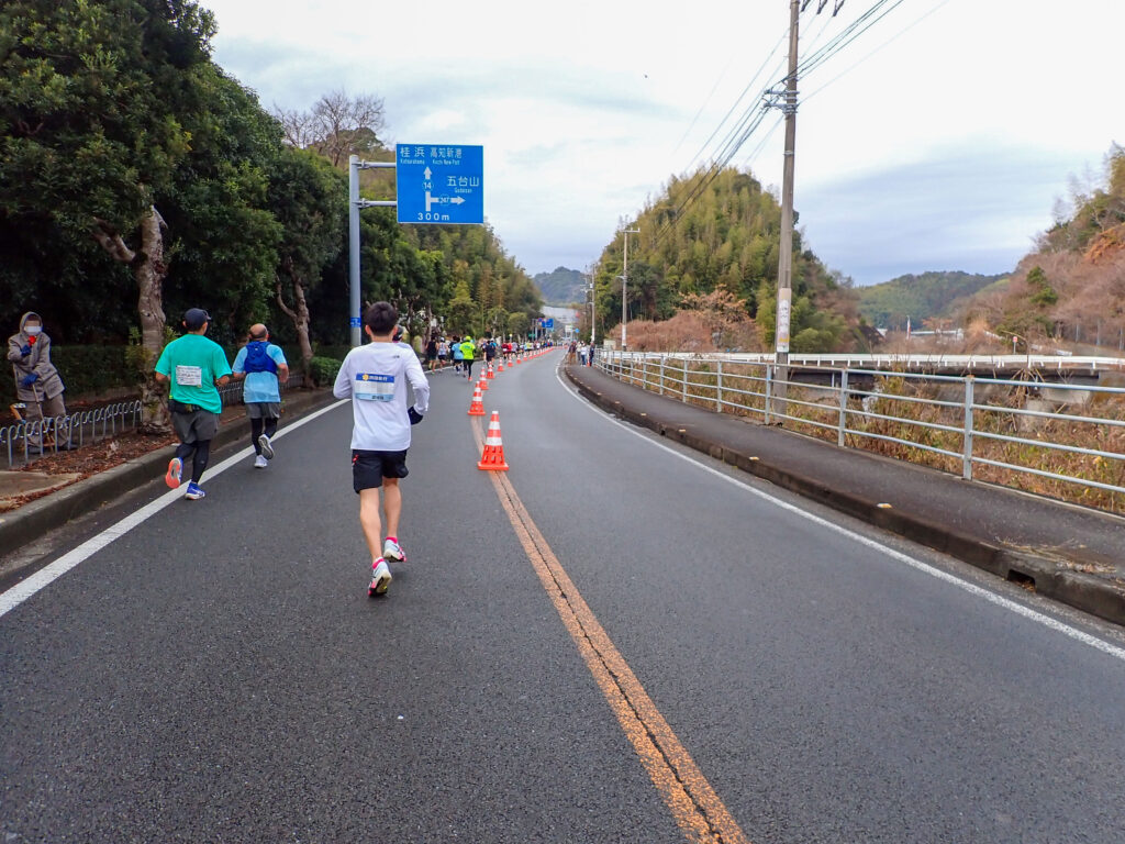 海を眺めながら走り、「仁淀ブルー」で有名な仁淀川を渡って折り返し、春野陸上競技場をゴールとするコースです。