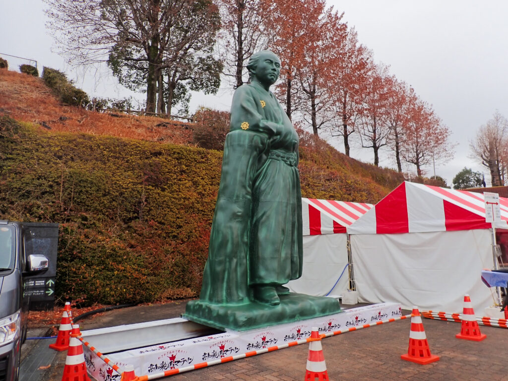 この日の為に、高知駅から出張してきた龍馬像!