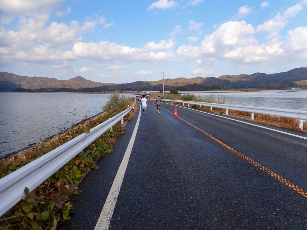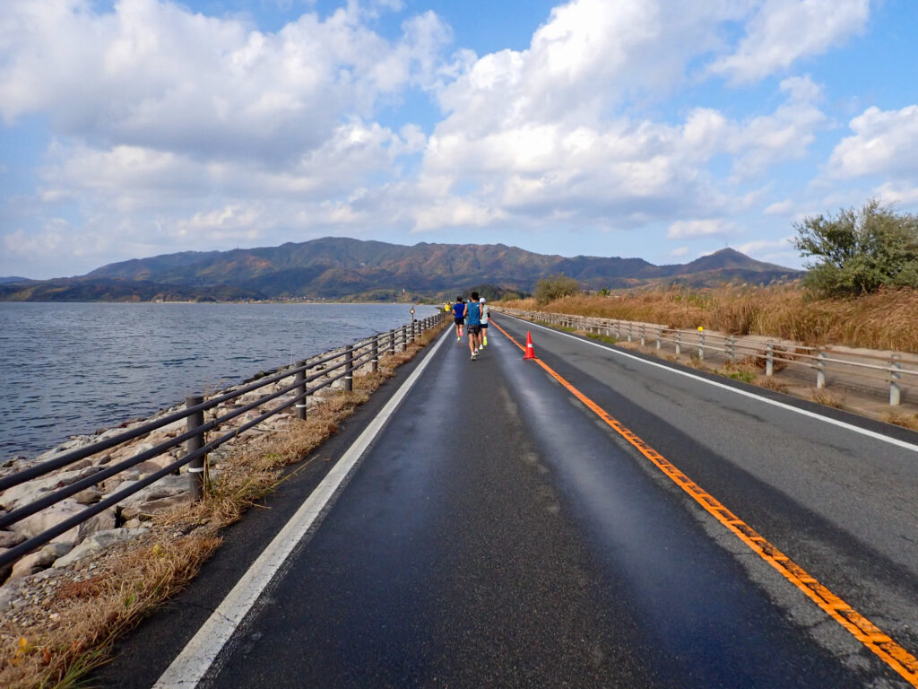 朝酌川沿いから山あいの道へ進み、中海沿いを走ります