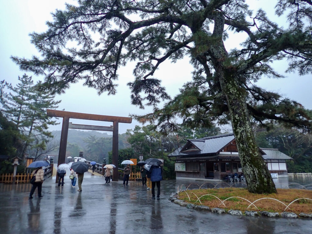冬至の前後約1か月は、晴れていれば、内宮宇治橋の大鳥居から昇る朝日を見ることができるそうです。