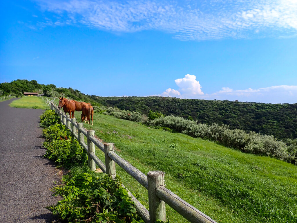 すぐそこに牛馬が放牧されています (;゚Д゚)!